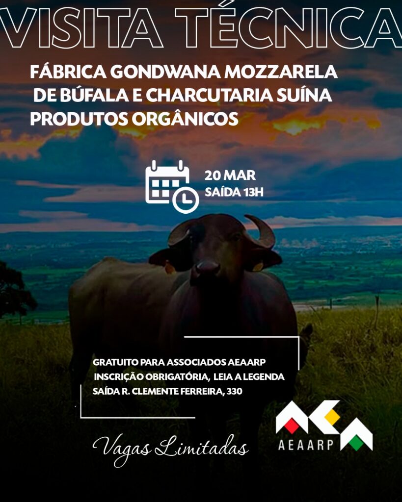 A AEAARP convida seus associados para uma experiência única na *Fábrica Gondwana, especializada em *Mozzarela de Búfala e Charcutaria Suína orgânicos! Descubra os segredos da produção artesanal, conheça os processos sustentáveis e deguste produtos de alta qualidade.